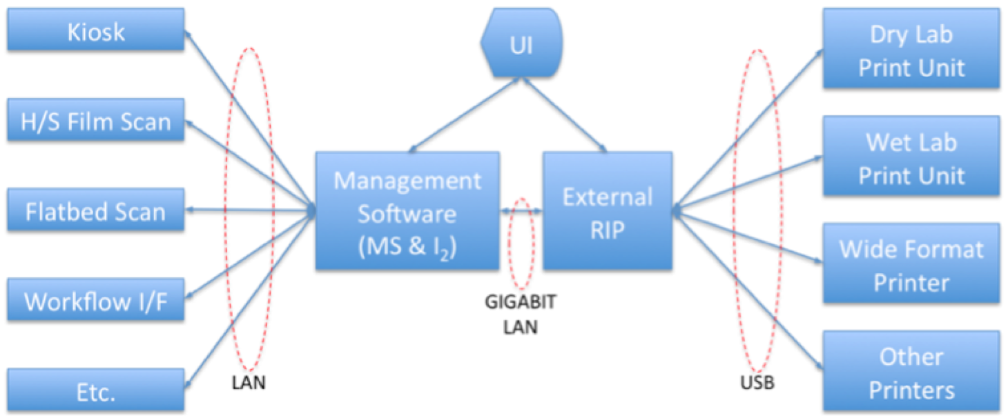 Note - If any 3rd party order sources, such as non-Fuji kiosks or retailer’s own online photo site, are required as inputs to MS01 an additional module - MS13 - is required to provide the requisite connection capability.